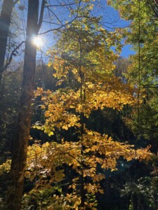 Poplar has shifted to a bright yellow, and hickory is surprisingly vivid. Sourwood is displaying predominately red and maroon hues, while blackgum is also vibrant with reds, yellows, and oranges. These species are near their peak, and their vibrancy may begin to dull over the following week. Maples are in an earlier stage of their transition. Many are still green, while others are just beginning to shift into their characteristic red, yellow, or orange.